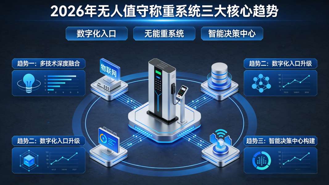 随着物联网、大数据和人工智能技术的渗透,无人值守称重系统已不再是简单的重量计量工具,正向着“数字化入口”和“智能决策中心”演进。展望2026年,行业呈现出三大核心趋势。 趋势一:全过程智能化与无人化 未来的称重系统追求的是“无感”过磅。从车辆进厂的智能派车、排队叫号,到称重过程中的自动引导、自动定位,再到与装卸货系统的联动,全流程无需人工干预。例如,通过集成库位管理系统,系统不仅知道车装了多重的货,还知道该去哪个月台卸货,实现物流调度的高度自动化。 趋势二:多层纵深防作弊体系 作弊手段的升级倒逼防作弊技术的进化。2026年的领先系统正构建“物理拦截+数据存证+流程管控”的三层防护体系。物理层利用红外光栅、雷达防止不完全上磅;数据层引入区块链技术,对称重数据进行存证,确保一旦写入不可篡改;流程层则通过预付款校验、超合同拉货拦截等财务管控手段,从事后追查转向事前预防。 趋势三:系统集成与数据价值挖掘 目前,超过85%的企业要求称重系统打通与ERP、MES的链路。这意味着系统不仅是称重,更是生产数据的入口。基于B/S架构的云端集中管理平台,能让集团总部实时查看所有分公司的计量状态,自动生成多维度的分析报表(如来料趋势、运输绩效)。计量数据正从仅服务于财务结算,跃升为支撑企业生产调度、成本核算甚至物流规划的战略资产。